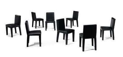 ANTONIO CITTERIO (ITALIAN B. 1950) Eight black leather slipcovered dining chairs