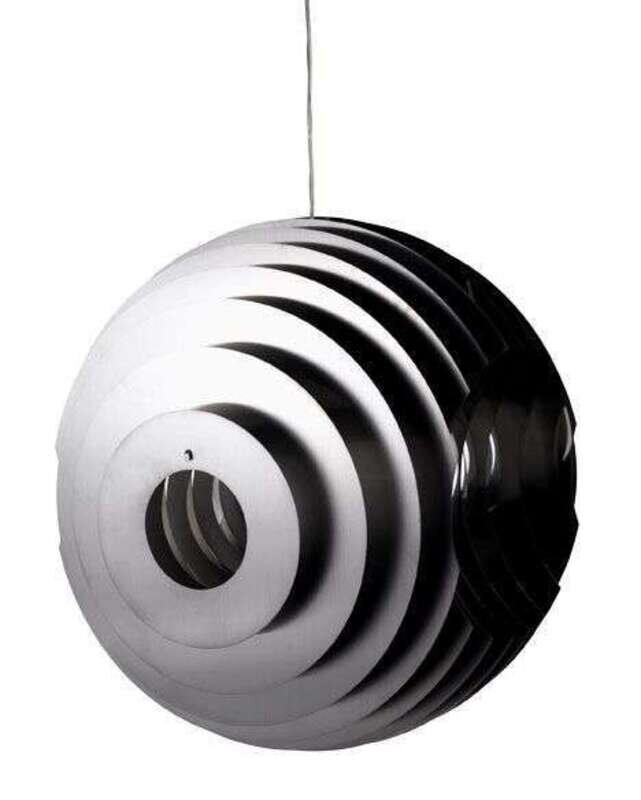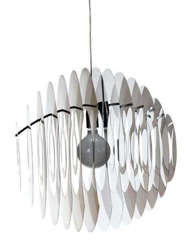 Designed in 2000 for Foscarini. Graduated matte aluminum disks hang from a chrome support.