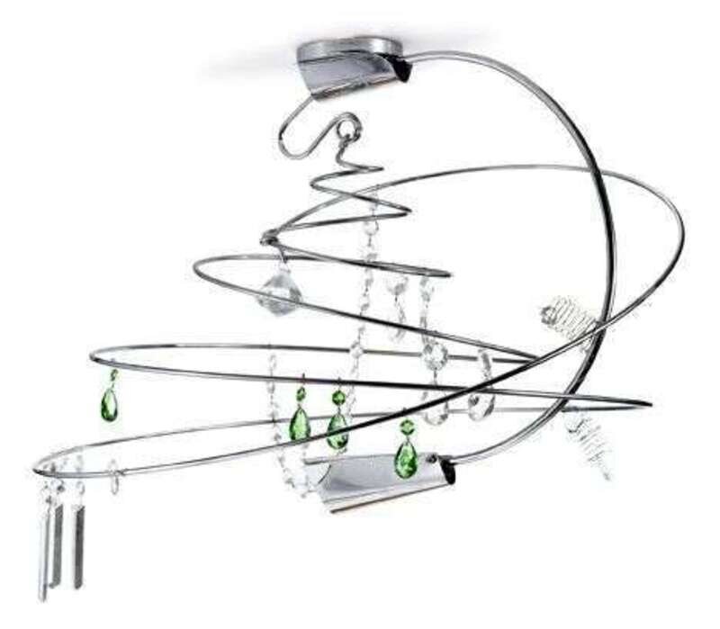 Designed in 1991 for Artemide. Canopy, frame and diffuser made of chromed steel, ornamented with colored cathedral cut glass, crystal drops and stainless steel shapes.