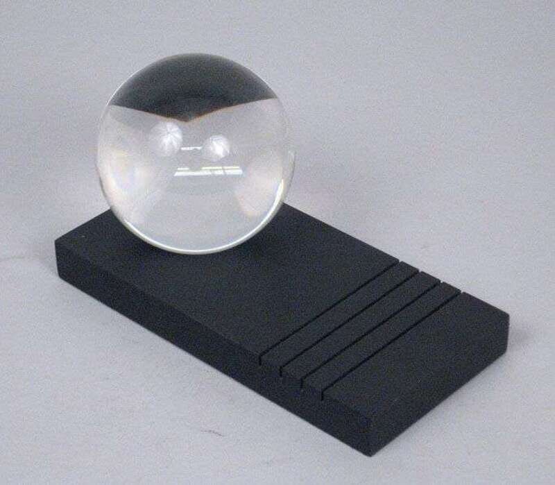 ATTRIBUTED TO STEUBEN Solid crystal ball on black plinth base.