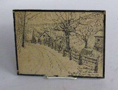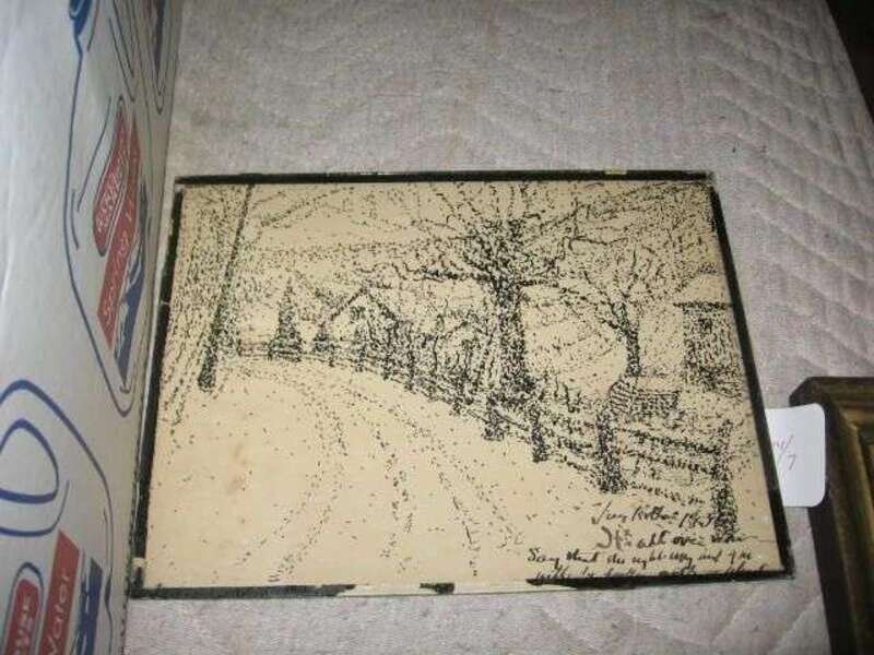 Two interior views one executed n pencil the other in watercolor. Third print of Jug Hollow, Valley Forge, PA executed in ink.