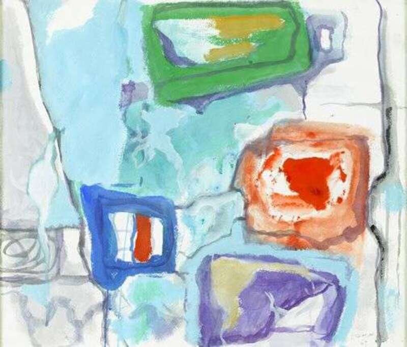 Signed 'Hossiason' bottom right, abstract composition, indistinct inscription and Paris export stamp verso, watercolor