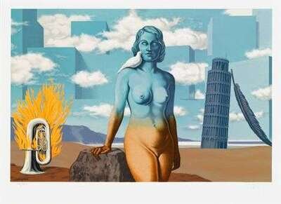 (AFTER) RENÉ MAGRITTE (BELGIAN 1898-1967) "UN BOMBARDON LIBÈRE SON BOUQUET DE FLAMES"FROM "LES ENFANTS TROUVÉS"