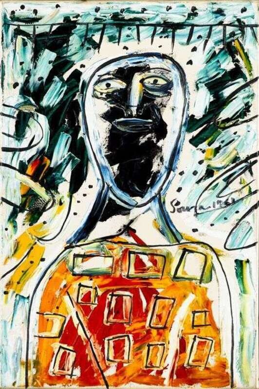 Signed and dated 'Souza 1961' center right, inscribed verso 'Head/Oil on Canvass [sic] /30" x 20"' with Estate number verso 'OC-61-001' oil on canvas, unframed