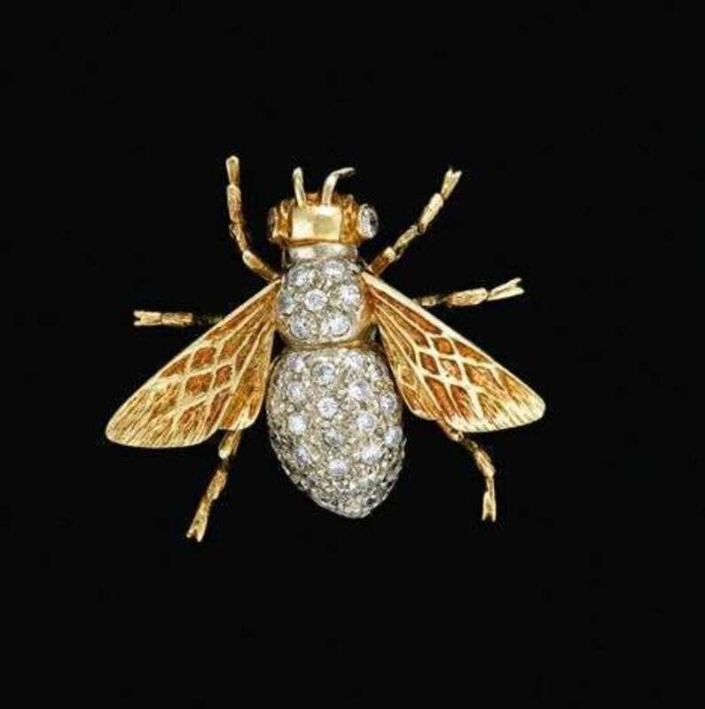 14 karat yellow gold and diamond "bee" pin 20th century