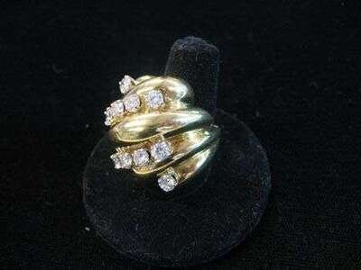 Contemporary yellow gold and diamond dinner ring