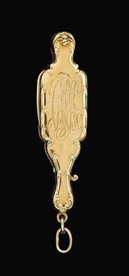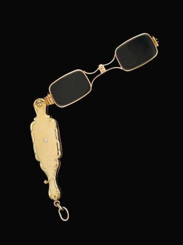 Etched with the initials 'CMK' the lorgnette is accented by one Old European cut diamond in the center of the reverse side.