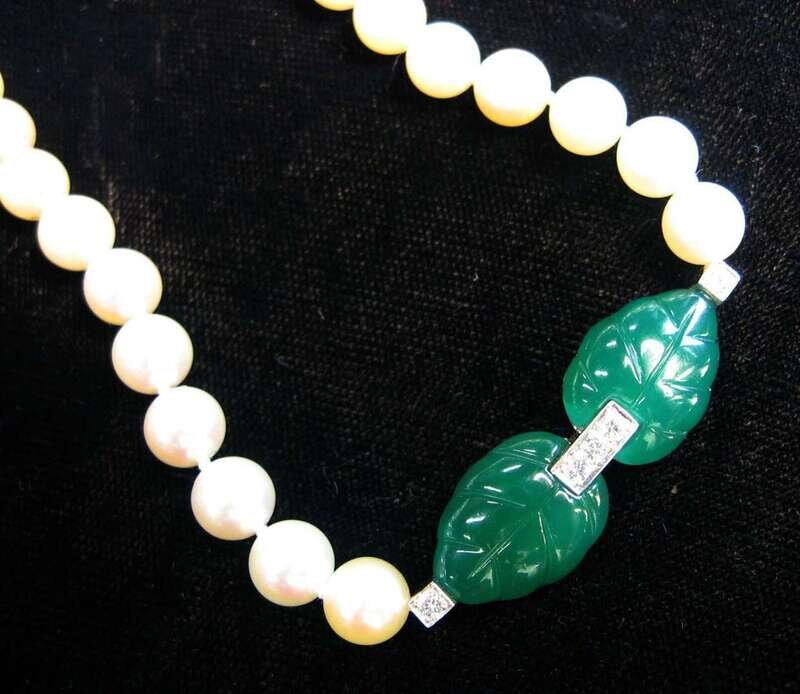 Cultured pearl and emerald necklace, Cartier