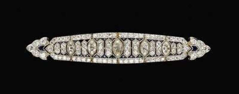 Platinum, diamond and sapphire bar pin art deco