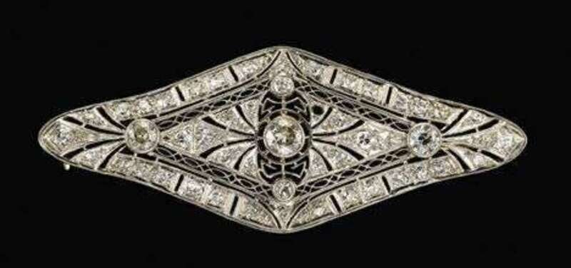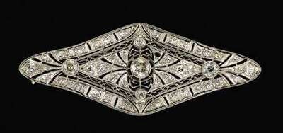 14 karat white gold, diamond filigree brooch victorian