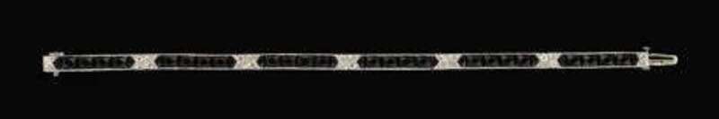 14 karat white gold, black onyx and diamond flexible bracelet