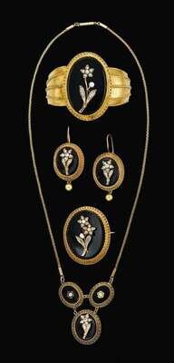 Victorian gold,onyx and pearl jewelry parure 19th century