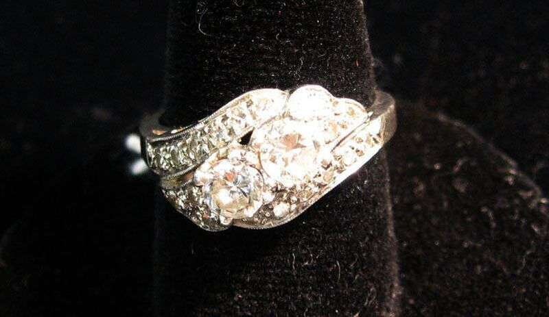 Platinum and diamond twin stone ring 20th century