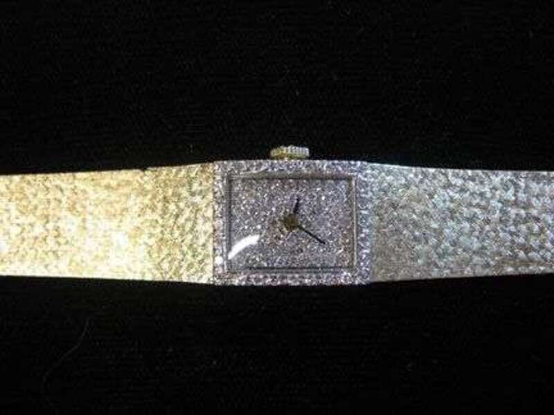 Lady's 14 karat yelllow gold and diamond wristwatch, Omega 20th century