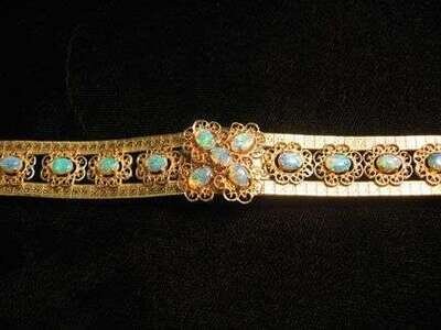 Set with eleven petite oval cut white opals.