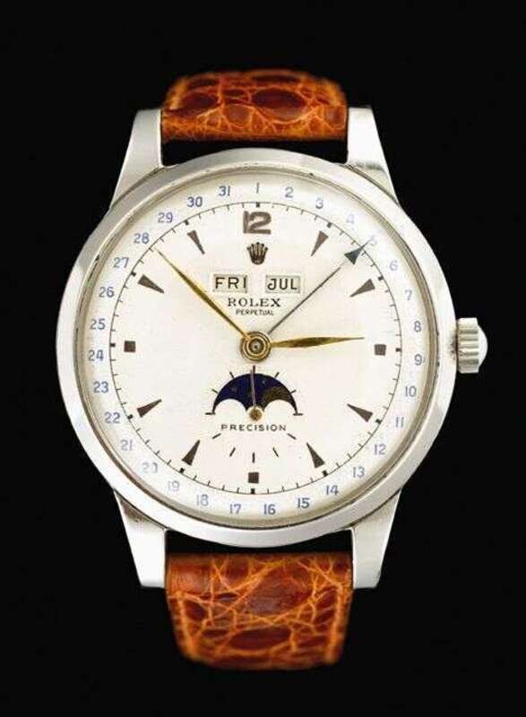 A rare stainless steel automatic triple calendar wristwatch with moon phases by Rolex, "Perpetual/precision" circa 1950