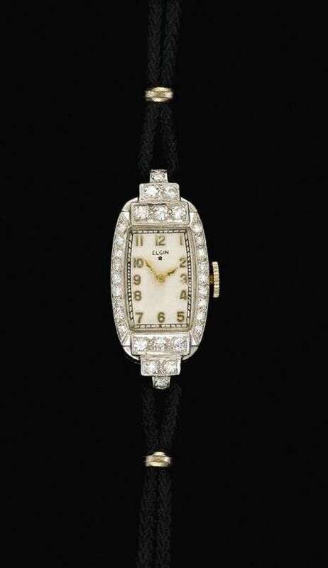 Lady's platinum and diamond cased Elgin wristwatch art deco
