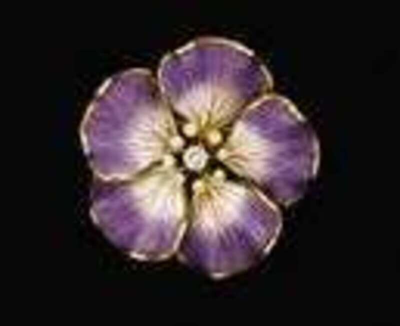 Purple and lavender enamel flower pin early 20th century