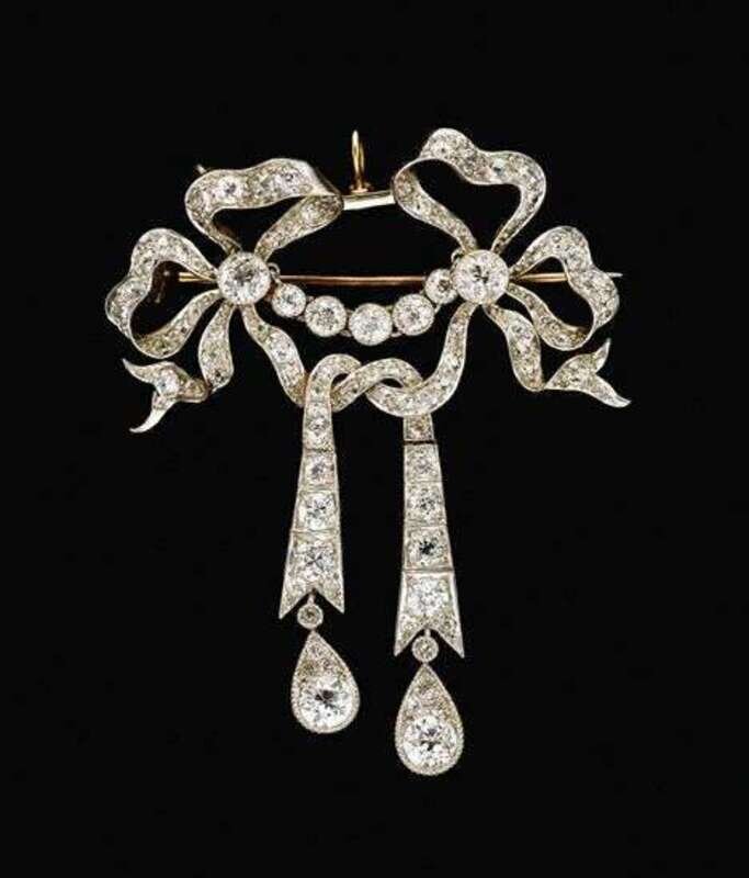 Platinum and diamond bow knot drop brooch belle epoque