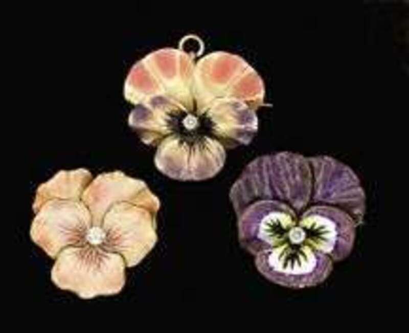 Each with a diamond in the center purple with yellow and white; iridescent pale pink; iridescent yellowish with pink and purple.