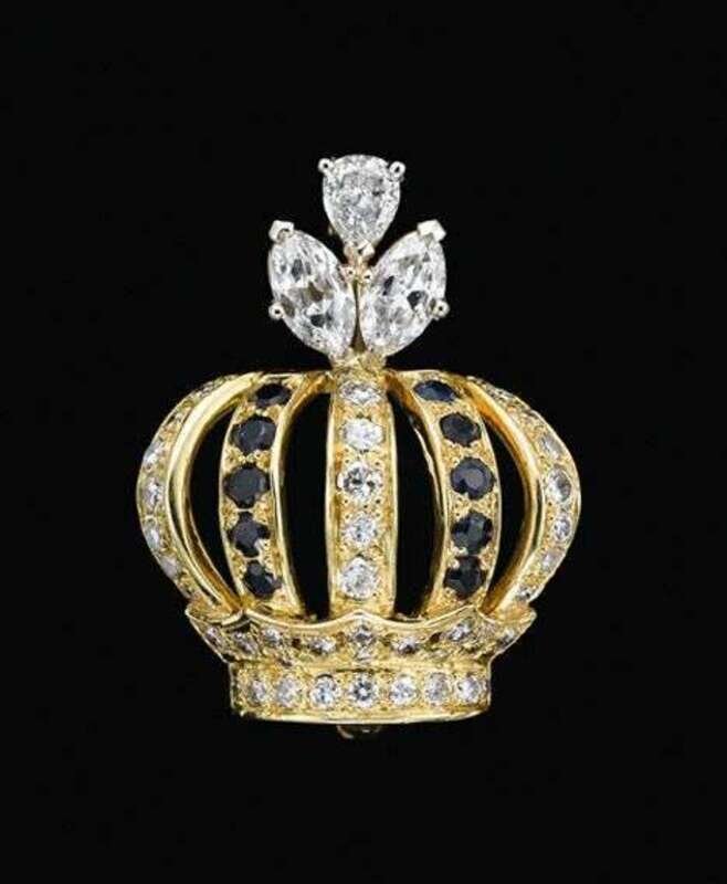 Yellow gold, diamond and sapphire "crown" pin 20th century
