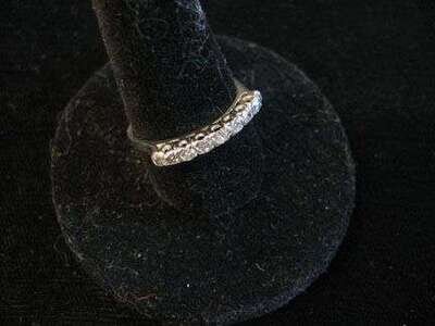 Five petite round cut diamond in platinum prong setting, stamped platinum.