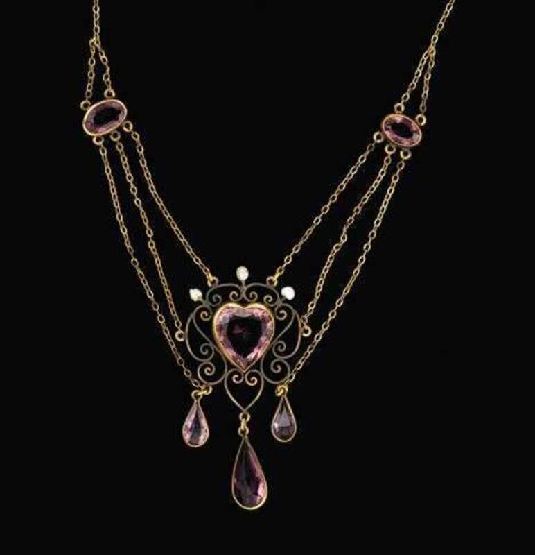 Gold filled and amethyst pendant necklace, Foster & Bailey edwardian
