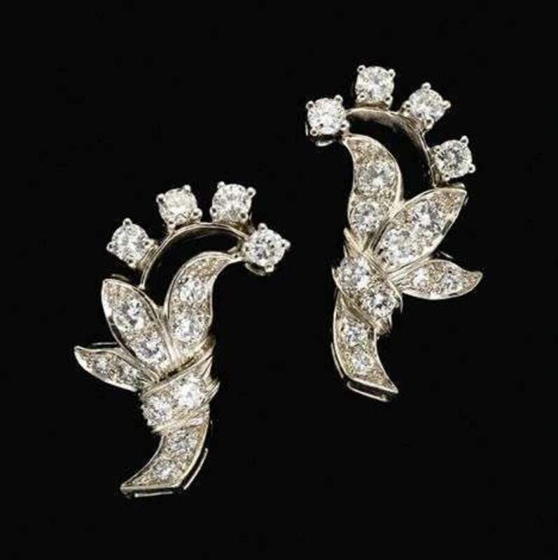 Free form garland design featuring twenty-eight full cut diamonds with a total weight of approximately 1.50 carats.