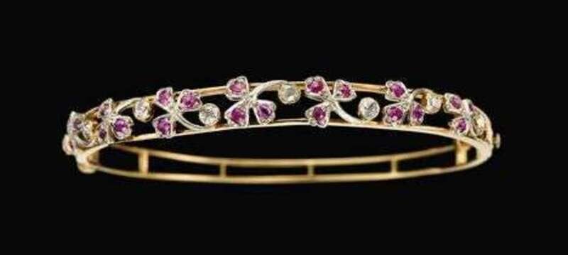 14 karat yellow gold, pink sapphire and diamond bracelet early 20th century