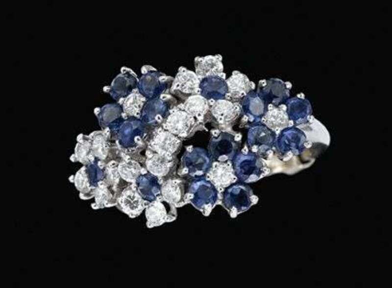 Platinum, sapphire and diamond flower ring