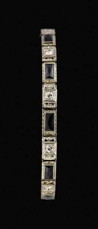 14 karat gold platinum topped sapphire and diamond bracelet art deco