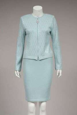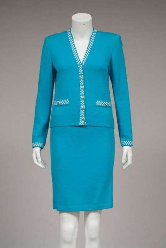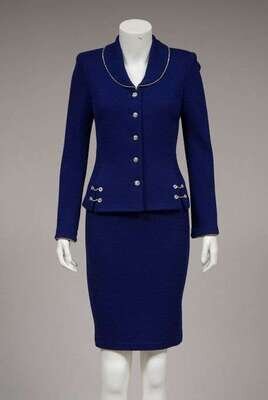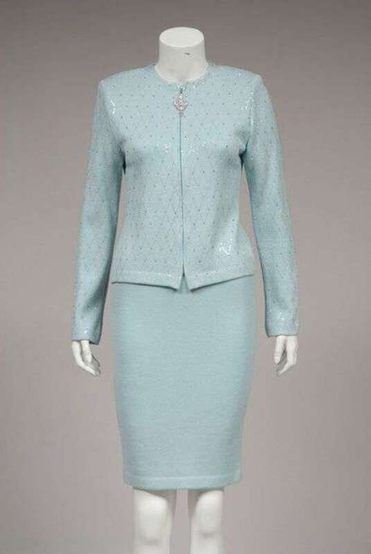 In royal blue, baby blue, and robins egg blue. Together with an embellished Cache suit.
