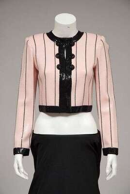 Together with a cropped black and white St. John Evening jacket, all size 2.