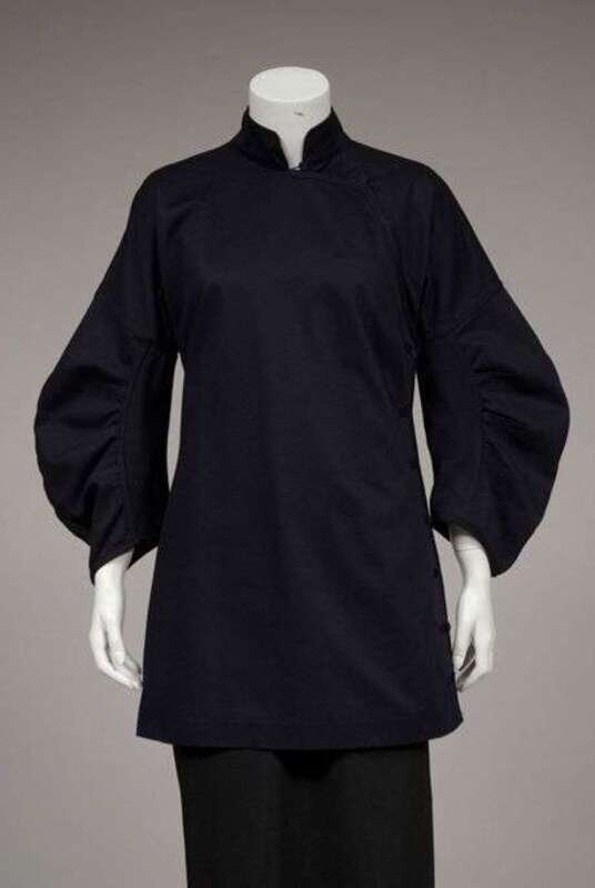 With shaped and sculpted arms and asymmetrical button fastening, Nehru collar. Size 42.