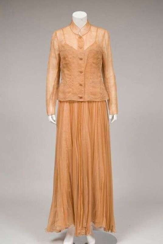 Chanel sheer terracotta charmeuse evening gown and jacket spring 1997