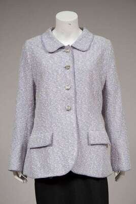 Cotton and wool blend boucle four-button rounded collar jacket with round silver buttons and hip pockets. Size 50.