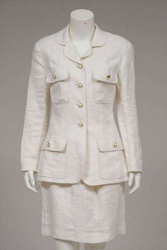 White linen Chanel skirt suit 1980s-90s