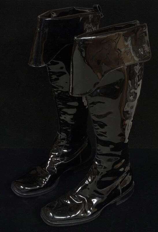 Tall Chanel black patent leather Cossack boots 1990s-2000s