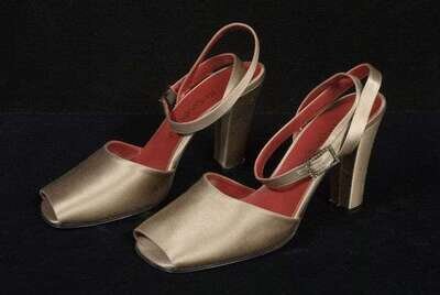 Yves Saint Laurent champagne satin peep-toe ankle strap shoes 1990s-2000s