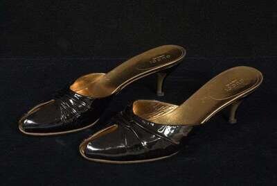WIth curved gold and black heels, size 9 1/2.