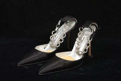 Manolo Blahnik black silk and rhinestone stiletto heel shoes 1990s