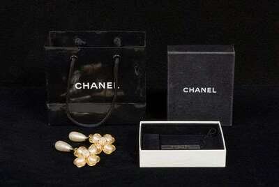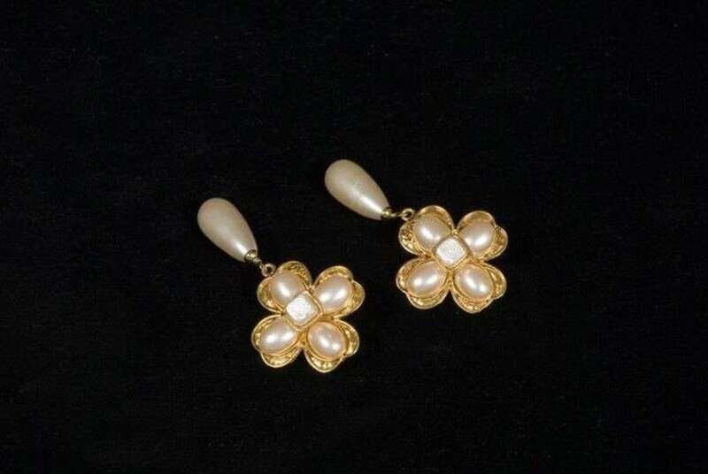 Chanel four-leaf clover and pearl-drop clip earrings spring 1994