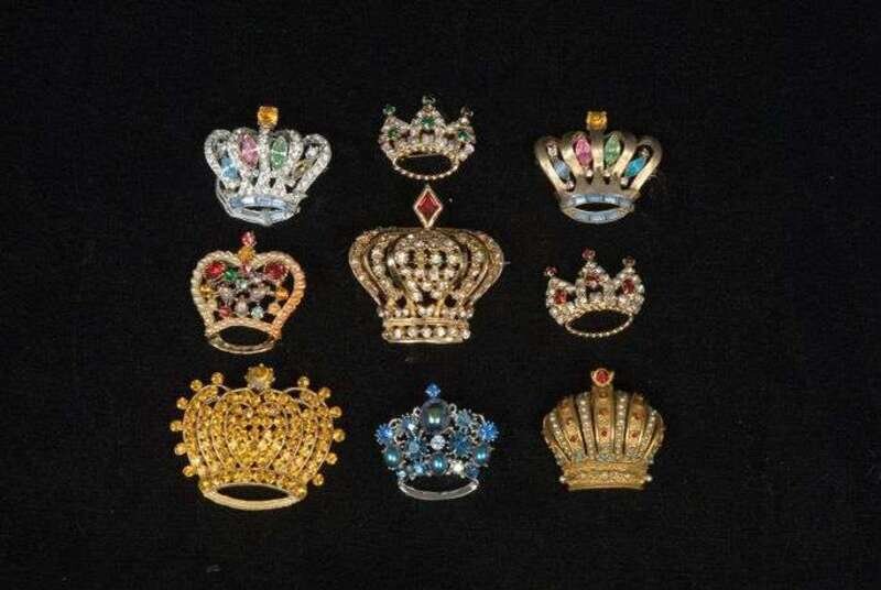 Group of rhinestone "crown" brooches 1960s