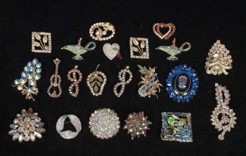 Group of various rhinestone brooches 1960s