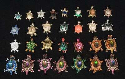 In many sizes, colors and designs, many D&E Juliana, some with Japanned finish.
