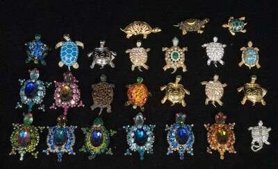 In various colors and styles, many D&E Juliana, some with Japanned finish.