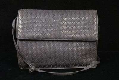 Bottega Veneta slate gray woven leather flap-front purse 1980s