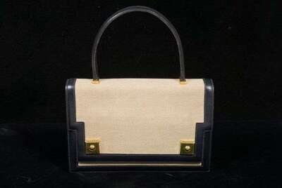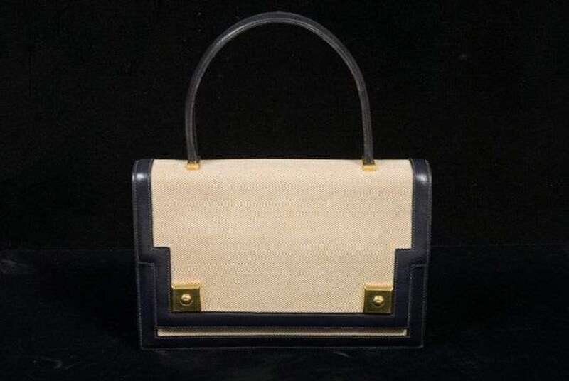 Hermes canvas and navy calfskin Piano bag