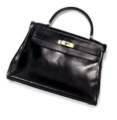 Classic form in smooth black leather, top handle and gold hardware. Embossed "HERMES Paris / Made in France" in gold.