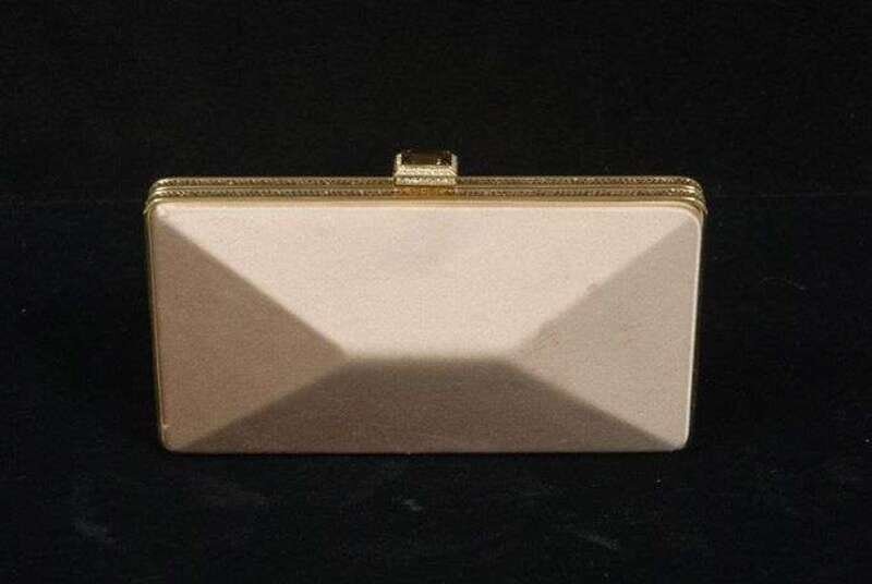 Judith Leiber champagne satin and jeweled evening clutch